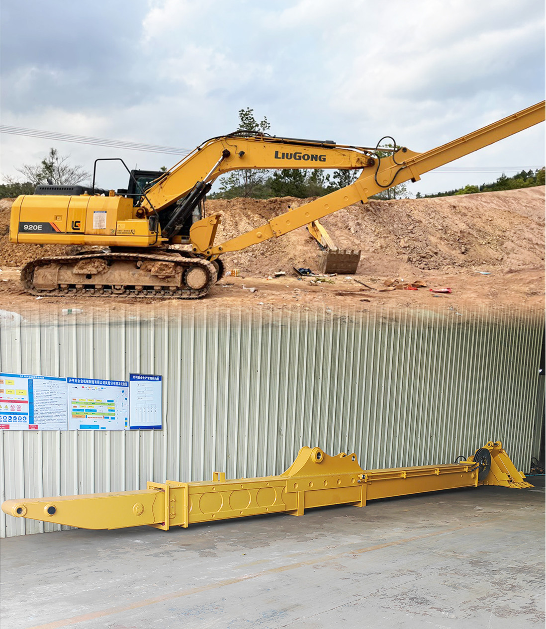 एकएक एक्सकेवेटर टेलीस्कोपिक आर्म में एक कठोर मुख्य बॉडी, एक स्लाइडिंग एक्सटेंशन, एक स्टील की रस्सी और एक हाइड्रोलिक टेलीस्कोपिंग तंत्र होता है। स्लाइडिंग सेक्शन की संख्या बदलने से अनुकूलन योग्य खुदाई रेंज और गहराई सक्षम होती है। एक बाल्टी के साथ मिलकर, यह मिट्टी, रेत और कोयले जैसी सामग्रियों के लिए गहरी खुदाई का काम करता है।